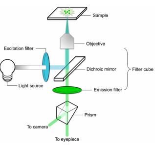 میکروسکوپ های فلورسنت با استفاده از فیلتر، نور تک رنگ با طول موج خاصی را می توانند ایجاد کنند. این نور به نمونه برخورد کرده و باعث برانگیختگی رنگ فلورسنت در نمونه می شود. نور گسیل شده از نمونه توسط یک فیلتر دیگر جدا شده و به چشم ما می رسد.هنگام انتخاب رنگ های فلورسنت باید به این نکته توجه کرد که میکروسکوپ مورد نظر فیلترهای متناسب با رنگ را داشته باشد.