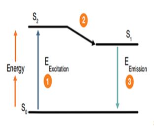 رنگ های فلورسنت مواد شیمیایی ای هستند که با تابش طول موج خاصی از نور بر انگیخته می شوند بعد از برگشت به سطح انرژی پایه خود نور با طول موج خاصی را ساطع می کنند. طول موج اول را برانگیختگی یا excitation و طول موج دوم را گسیل یا emission می نامند.