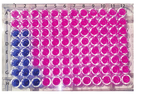 سپس بعداز گذشت ۴۸ساعت انکوباسیون در دمای ۳۷ درجه سانتی گراد رشد و عدم رشد در پلیت ها را مورد بررسی قرار می دهیم