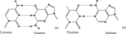 جفت بازهای CG از طریق سه پیوند و جفت باز های AT از طریق دو پیوند هیدروژنی کنار هم قرار می گیرند. با این شرایط تعداد T با تعداد A و تعداد C با تعداد G برابر می شود بنابراین می توان ترکیب باز های DNA را با ذکر درصد (GC درصدG + درصدC) در ترکیب آن مشخص نمود. برای مثال ترکیب DNA با ۵۶ GC٪ شامل ۲۸ G٪ ؛ ۲۸ C٪ ؛ ۲۲ T٪ و ۲۲ A٪ است.