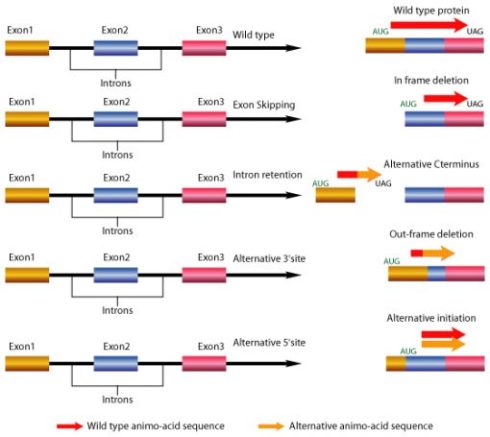 mRNA های اصلاح شده سپس باید در معرض پیرایش (Splicing)قرار گیرند. اسپلایسینگ فرآیندی است که طی آن اینترون ها حذف و اگزون ها به هم اتصال می یابند. اگزون ها دارای کدون های رمز کننده پروتئین هستند در حالی که هیچ رمز ژنتیکی کدکننده محصول نهایی در اینترون ها وجود ندارد.